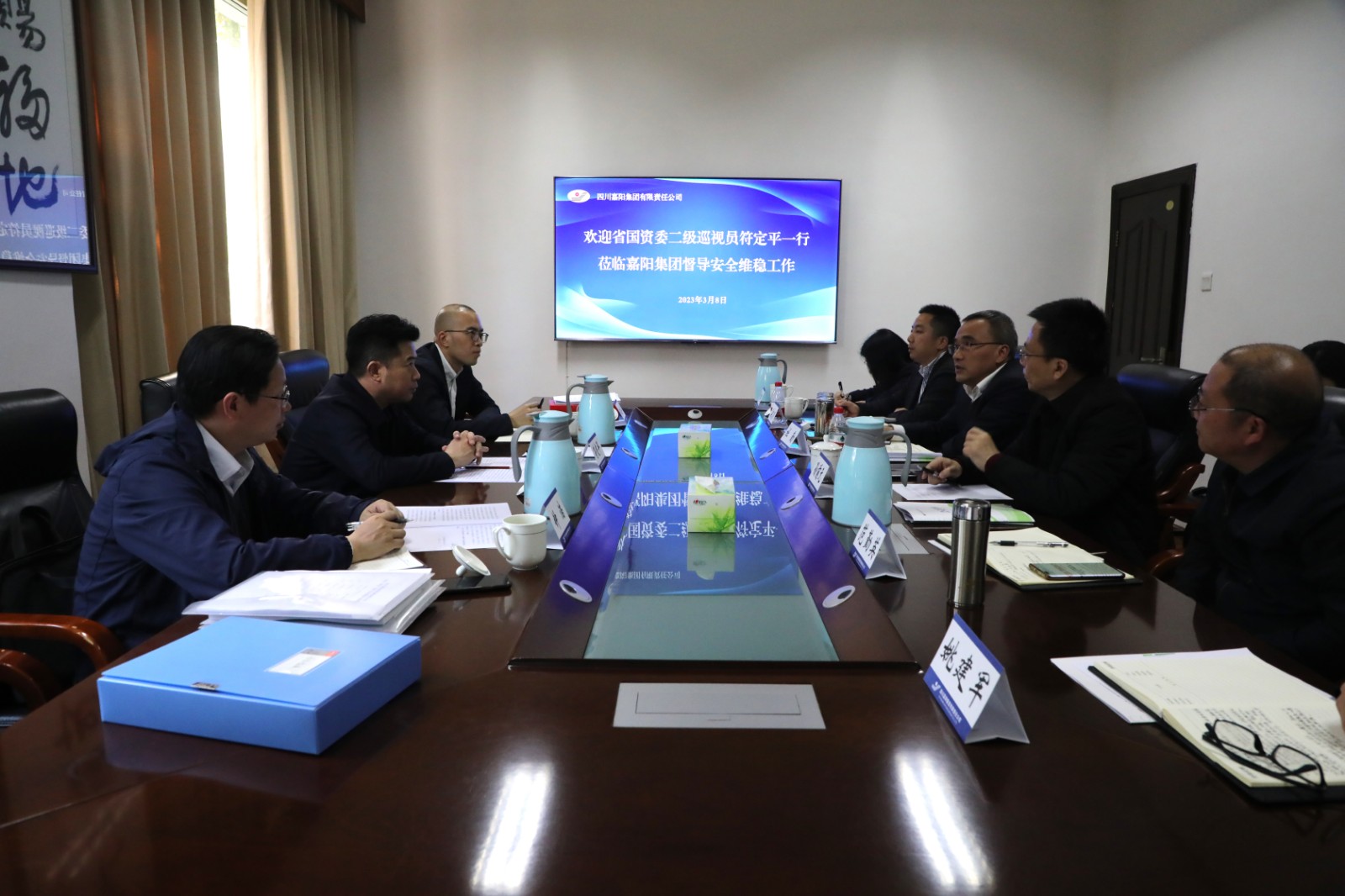 3月8日,省國資委二級(jí)巡視員符定平帶隊(duì)到嘉陽集團(tuán)開展督導(dǎo)調(diào)研,全面了解“兩會(huì)”期間安全生產(chǎn)、信訪穩(wěn)定等工作,川投集團(tuán)副總經(jīng)理孫前元等陪同調(diào)研。