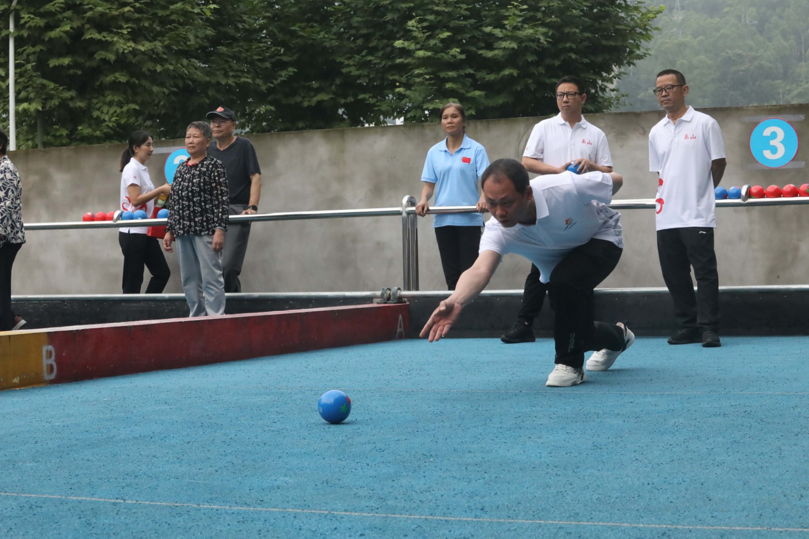 運(yùn)動(dòng)員和裁判員代表分別宣誓,樂山市擲球協(xié)會(huì)主席張恩宣布比賽開始。比賽分為男子組和女子組,男子組9支代表隊(duì)采用分組單循環(huán),小組前兩名進(jìn)行交叉賽;女子組7支代表隊(duì)則采用單循環(huán)賽制隊(duì)隊(duì)見面,每場比賽8輪,每局9分,按積分排列名次。