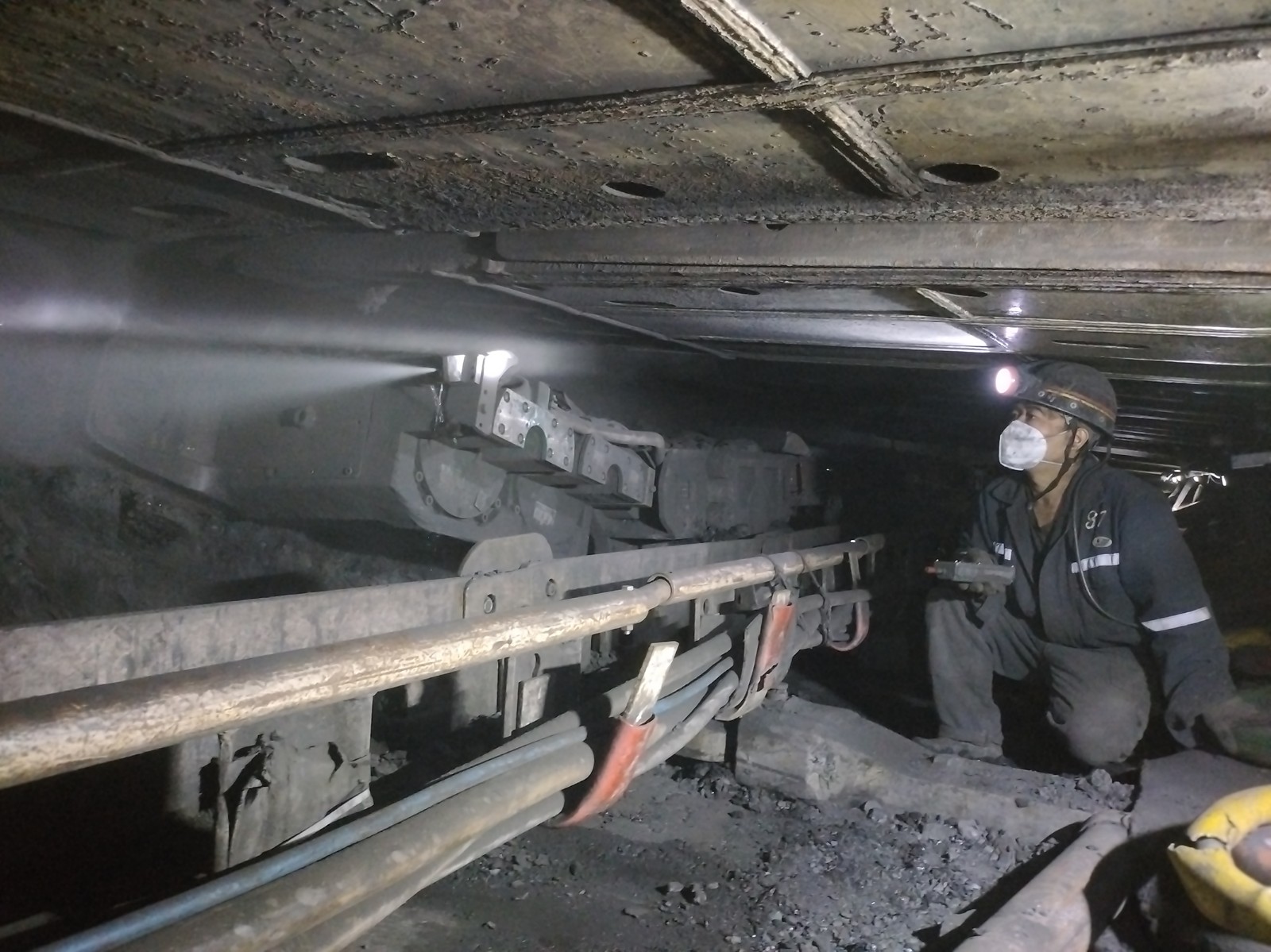 針對頂板垮塌,采煤一隊迅速調(diào)整端頭支架,加強人工補液,確保支架穩(wěn)固。實施三班輪換機制,全面維護(hù)液壓系統(tǒng),確保頂板支護(hù)到位。為了解決頂板砂泄漏,割煤后立即在支架頂上鋪設(shè)軌道梁與鋼性焊網(wǎng),構(gòu)建堅固防線。同時,錨網(wǎng)加固架頂,增強防護(hù)。對機道內(nèi)支柱與工鋼棚“腿”插底板的難題,加密工鋼棚,特別在水患區(qū)增設(shè)碹石、寬木墩,提升支撐力。措施落地立竿見影,12031工作面生產(chǎn)逐步回暖,已恢復(fù)遠(yuǎn)程操作,日推進(jìn)度穩(wěn)定在6至7循環(huán)。截至目前,采煤一隊新工作面已累計生產(chǎn)煤炭40283噸,地面遠(yuǎn)程開采已穩(wěn)定十余天。