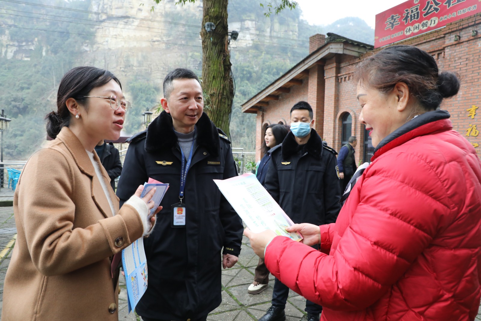 在芭蕉溝商業(yè)街,市場監(jiān)督管理局的工作人員督導(dǎo)檢查餐館食品衛(wèi)生安全,引導(dǎo)商戶文明誠信經(jīng)營,打造安全放心的消費環(huán)境;在景區(qū)服務(wù)點,公司法務(wù)部的同志向工作人員講解《消費者權(quán)益保護法》相關(guān)知識,增強服務(wù)人員的法律意識、文明意識,做文明旅游踐行者,共同營造誠信景區(qū)環(huán)境;活動現(xiàn)場還設(shè)置了法律咨詢服務(wù)點,升力律所的律師向游客發(fā)放《民法典宣傳折頁》《“八五”普法宣傳冊》等普法資料,為游客們免費提供了法律咨詢服務(wù),用心用情把法律知識送到群眾身邊。
