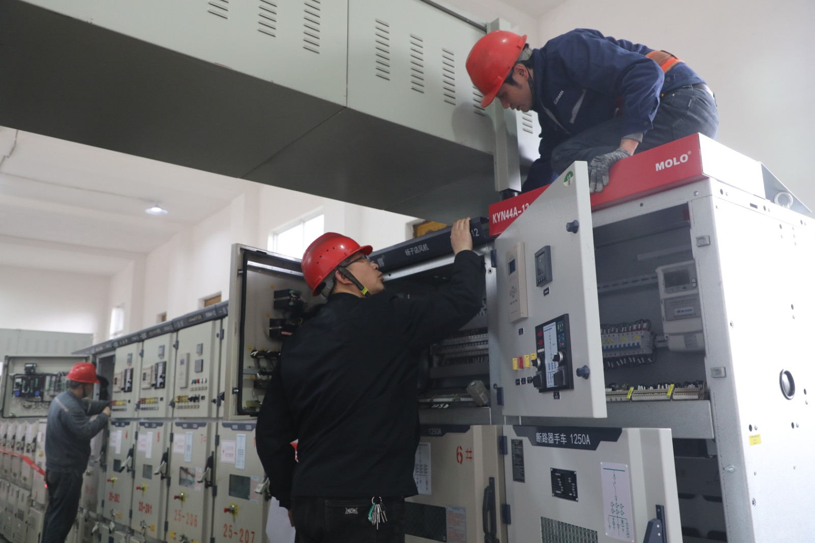本次檢修為期3天,針對35KV變電站和6KV變電站展開全面細(xì)致的檢查與保養(yǎng)。35kV變電站室外變壓器、電容器,室內(nèi)真空斷路器、隔離開關(guān)等設(shè)備均是檢修重點。工作人員認(rèn)真校對觸頭行程,確保設(shè)備運行精準(zhǔn);仔細(xì)緊固接線,防止松動引發(fā)安全隱患;嚴(yán)謹(jǐn)測試絕緣,保障電力傳輸穩(wěn)定。6kV變電站同樣不容馬虎,從系統(tǒng)室內(nèi)真空開關(guān)、合閘機(jī)構(gòu),到觸頭行程校對、接線緊固以及絕緣測試,每一個環(huán)節(jié)都嚴(yán)格執(zhí)行標(biāo)準(zhǔn)流程。此外,為提升礦井應(yīng)急供電能力,此次檢修還增加應(yīng)急儲能電源高壓開關(guān)聯(lián)絡(luò)控制柜,為后續(xù)智能化應(yīng)急供電系統(tǒng)安裝做好充分準(zhǔn)備。
