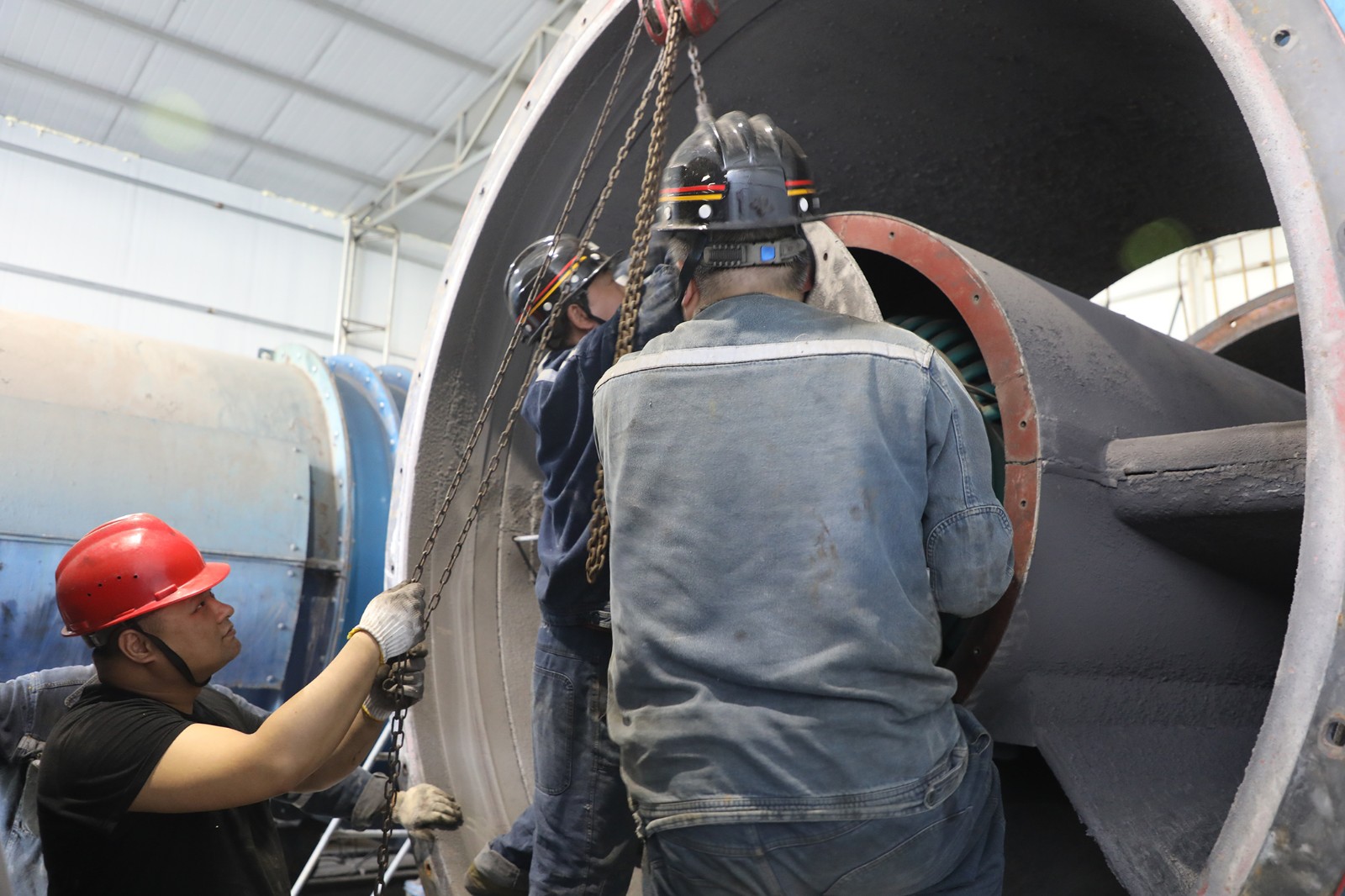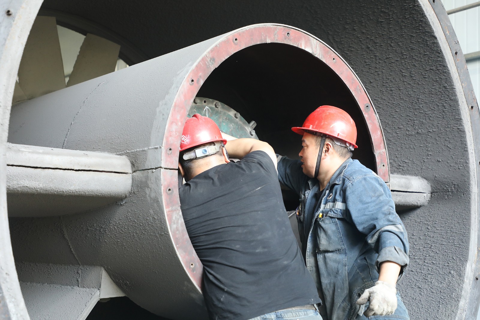 針對觀音溪主通風機使用年限長、銹蝕嚴重、性能下降等問題,檢修重點更換了塔加高、圓變方、內(nèi)擴散器等多個設(shè)施和部件。同時,對電機、軸承、風葉等關(guān)鍵部位進行全方位保養(yǎng)。同步,檢修人員對防雷電設(shè)施和供電線路穩(wěn)定性進行了嚴格測試,全力營造安全可靠的設(shè)備運行環(huán)境。