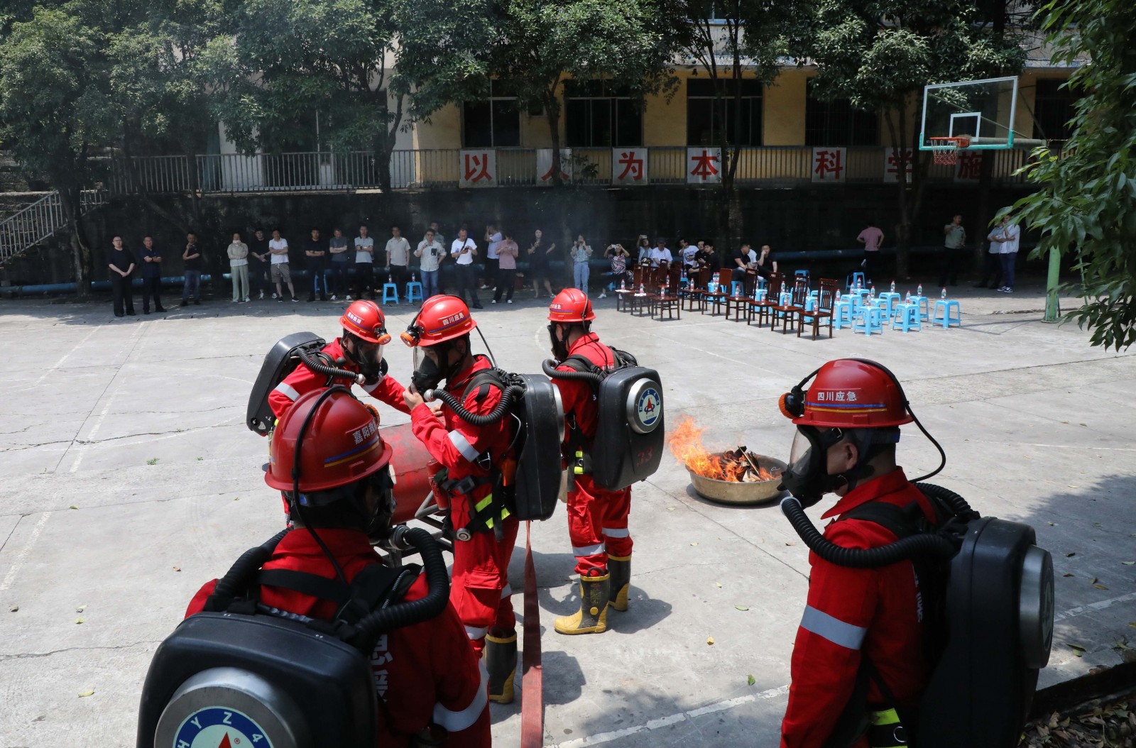 觀摩團觀看了集團公司企業(yè)宣傳片《礦山脊梁》、嘉陽礦山救護隊宣傳片《生命之光》,實地察看了礦山救護隊生活訓練場所,裝備器械管理場所,通過詢問了解礦山救護隊機構設置、組織架構、管理模式、制度辦法、設施裝備以及日常訓練等相關內容。隨后,礦山救護隊員們向觀摩團展示了自救器、蘇生器、破拆、液壓起重、災區(qū)電話等儀器操作使用,模擬演示了礦山救護隊進入災區(qū)現(xiàn)場,開展止血、包扎、固定、搬運等創(chuàng)傷急救環(huán)節(jié),全過程展示了聞警出動、戰(zhàn)前檢查、高倍數(shù)泡沫滅火機滅火、氧氣瓶互換、總結講評的綜合演練。隊員們飽滿的精神狀態(tài)和嫻熟的操作技藝獲得了觀摩團高度稱贊。大家表示,此次觀摩學到了很多實用的知識,進一步加深了對非煤礦山應急救援隊伍組建、日常訓練管理、綜合實戰(zhàn)演訓的認識。