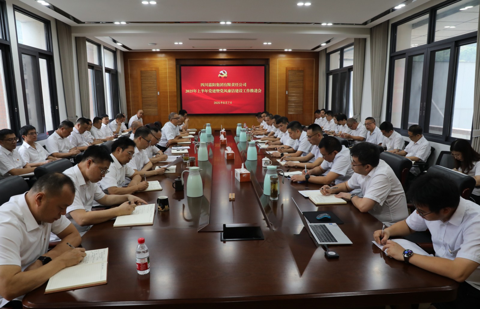 8月7日,集團公司召開2025年上半年黨建暨黨風廉潔建設工作推進會。黨委副書記、工會主席謝建國主持會議,公司領導班子成員,專職紀檢干部、各級黨支部書記等參會。
