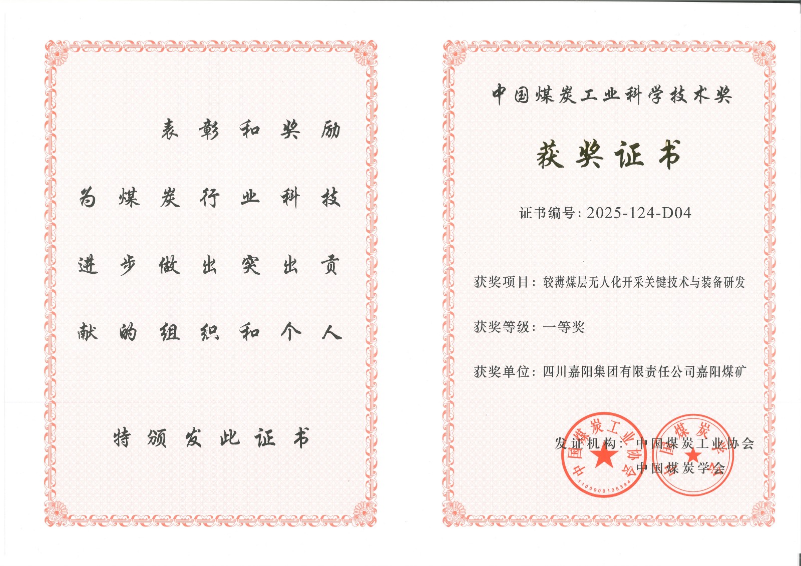 近日,2025年度中國煤炭工業(yè)協(xié)會(huì)科學(xué)技術(shù)獎(jiǎng)獲獎(jiǎng)結(jié)果揭曉,其中,四川嘉陽集團(tuán)有限責(zé)任公司嘉陽煤礦的“較薄煤層無人化開采關(guān)鍵技術(shù)與裝備研發(fā)”項(xiàng)目,憑借出色的技術(shù)創(chuàng)新與應(yīng)用成效榮獲一等獎(jiǎng)。