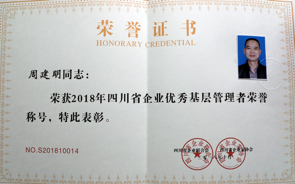 為推動企業(yè)基層管理水平不斷攀升,提升企業(yè)可持續(xù)發(fā)展力,打造高端人才匯聚高地和人才價值實(shí)現(xiàn)高地的要求,四川省企業(yè)家聯(lián)合會、省企業(yè)家協(xié)會聯(lián)合開展了此次評選活動,經(jīng)過推薦、會審等相關(guān)程序,最終完成了評選。公司副總會計師兼經(jīng)營財務(wù)部部長金大鈞,公司紀(jì)委副書記、審計部部長周建明恪盡職守,勇于奉獻(xiàn),為企業(yè)轉(zhuǎn)型升級發(fā)展作出了貢獻(xiàn),在此次評選活動中被授予“優(yōu)秀基層管理者”稱號。