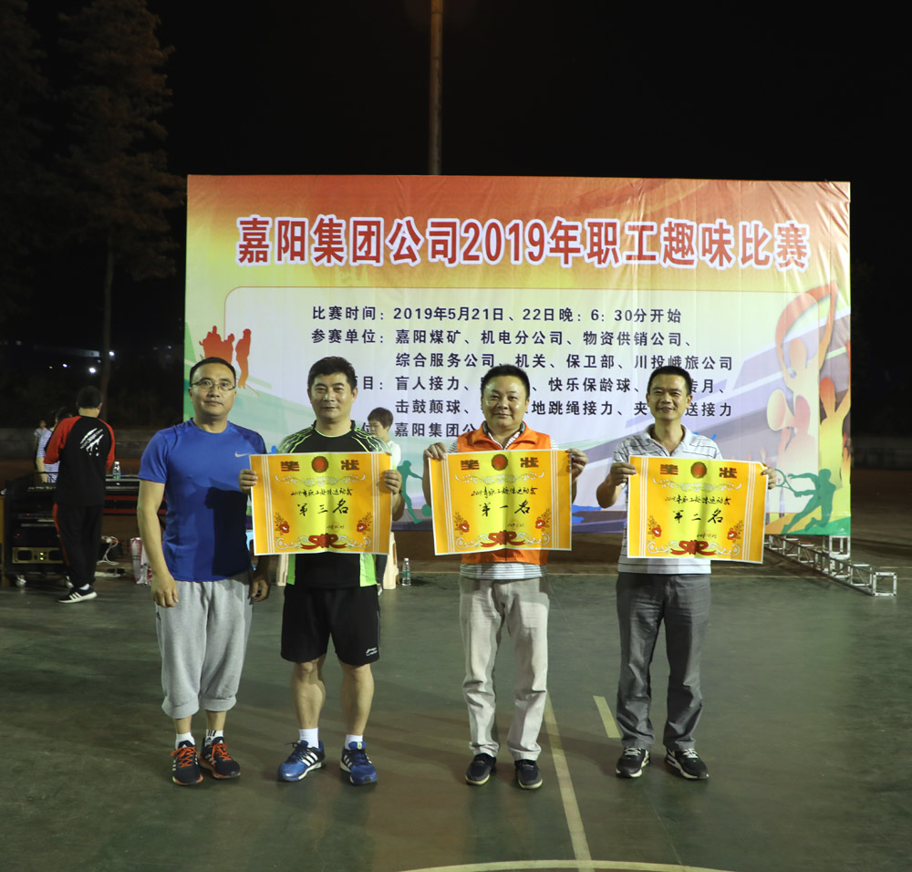 海底傳月、鉆圈、跳大繩均是14人的集體項(xiàng)目,對(duì)各隊(duì)團(tuán)隊(duì)協(xié)作能力是一次考驗(yàn)。第一天比賽中盲人接力笑料百出,要求比賽隊(duì)員戴上趣味眼罩,旁邊一人在不觸碰比賽隊(duì)員的情況下指揮他在規(guī)定的賽道完成接力挑戰(zhàn),找不到方向走出賽道的大有人在。快樂(lè)保齡球要求在規(guī)定的距離用氣排球滾擊礦泉水瓶,將其擊倒多者獲勝,期間有人一擊數(shù)瓶也有人擦瓶而過(guò)。8個(gè)項(xiàng)目既是比賽也是游戲,讓人樂(lè)在其中,回味無(wú)窮。參賽的七支隊(duì)伍各顯神通各有千秋。保衛(wèi)部在兩天的比賽中一舉拿下3項(xiàng)第一,鎖定冠軍,機(jī)關(guān)獲得第二,嘉陽(yáng)煤礦喜奪季軍,集團(tuán)公司黨委書記、董事長(zhǎng)杜勤為獲獎(jiǎng)單位頒獎(jiǎng)。