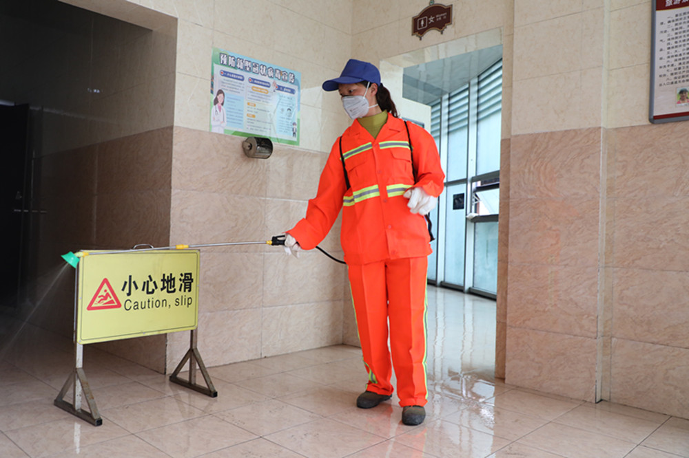 腐蝕性強(qiáng),雖然班前學(xué)習(xí)了消毒藥水的使用方法和注意事項(xiàng),但畢竟是第一次操作,鄧容全副武裝后為方便,一個(gè)人徒手小心謹(jǐn)慎倒消毒水,在收回容器的一瞬,她的左手拇指還是被一小滴藥水沾上了,“哇呀!”“快用水”“一定要小心”好在她火速在清水中稀釋只是灼傷點(diǎn)皮!危險(xiǎn)信號(hào)引起了大家的高度重視,新進(jìn)環(huán)衛(wèi)班的8名女工盡管輪流抗“疫”,從第一天開(kāi)始不斷互相鼓勵(lì)、互相提醒、互相幫助,她們的言行為整個(gè)環(huán)衛(wèi)班注入了一股暖流!