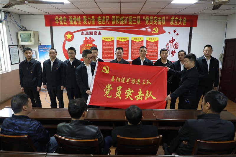 掘進(jìn)三隊(duì)黨支部書記秦剛在接過(guò)“黨員突擊隊(duì)”旗幟時(shí)表示:全隊(duì)上下務(wù)必堅(jiān)定信心,昂揚(yáng)斗志,發(fā)揚(yáng)嘉陽(yáng)人“特別能吃苦、特別能戰(zhàn)斗”的優(yōu)良作風(fēng),堅(jiān)定信心,戰(zhàn)勝困難,堅(jiān)決打贏這場(chǎng)“進(jìn)尺攻堅(jiān)戰(zhàn)”。黨群部部長(zhǎng)姚建軍希望掘三隊(duì)的黨員同志們要以黨史學(xué)習(xí)教育為契機(jī),提高思想認(rèn)識(shí),強(qiáng)化責(zé)任擔(dān)當(dāng),大力弘揚(yáng)煤礦“燃燒精神”,在急難險(xiǎn)重任務(wù)中彰顯黨員的先鋒模范作用,積極營(yíng)造“比、學(xué)、趕、超”的濃厚氛圍,以榜樣的力量帶動(dòng)全隊(duì)職工奮勇?tīng)?zhēng)先,以黨建引領(lǐng)促進(jìn)安全生產(chǎn)任務(wù)的圓滿完成。
