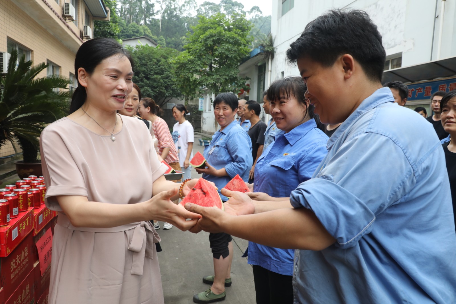 抗高溫 、送清涼,點(diǎn)滴關(guān)愛(ài)入心房。近日,樂(lè)山市總工會(huì)領(lǐng)導(dǎo)冒著酷暑來(lái)到嘉陽(yáng)煤礦看望慰問(wèn)奮戰(zhàn)在高溫烈日下的職工,為他們送來(lái)夏日的清涼和組織的關(guān)愛(ài)。