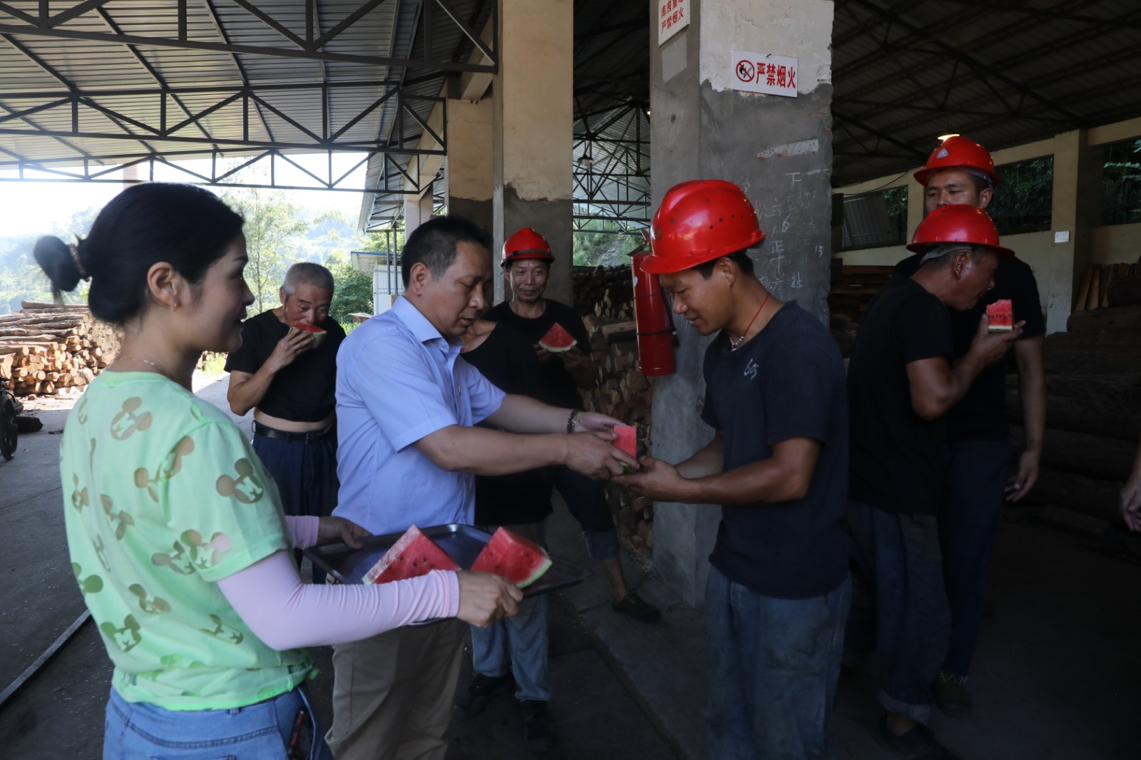 在物資供銷公司倉儲部、木材庫、炸藥庫,副總經(jīng)理王維洪、總經(jīng)理助理豐雄龍等二支部分會人員向作業(yè)人員送去了西瓜、礦泉水等清涼消暑物品,叮囑他們在工作的同時做好防暑降溫。分會還檢查了物資供銷公司防暑降溫工作措施,防暑藥品發(fā)放情況。副總經(jīng)理王維洪對他們說:“班組在布置工作時要靈活安排,盡可能避開高溫時段在室外作業(yè);無法避免時,要準(zhǔn)備好防暑藥品,落實好防暑措施,防止高溫中暑?!?/span>