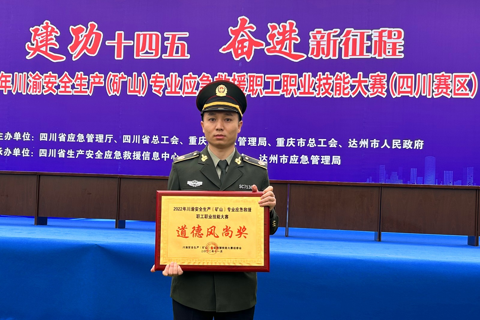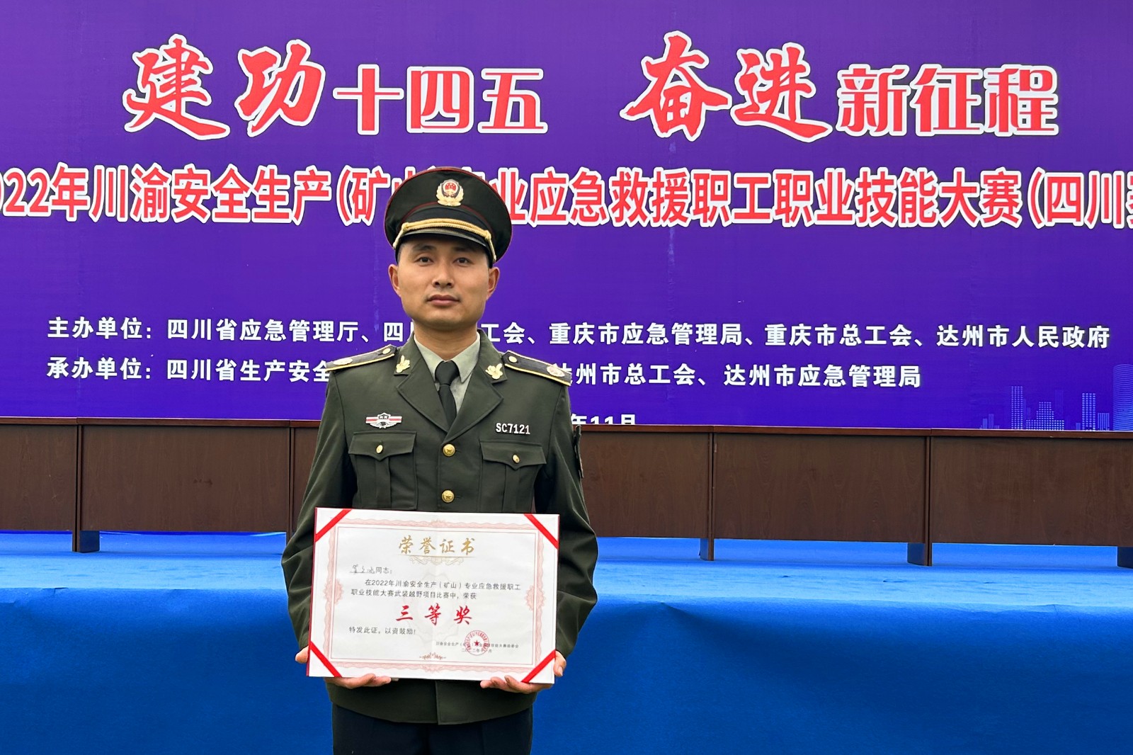 11月23日至24日,川渝安全生產(chǎn)(礦山)專業(yè)應(yīng)急救援職工職業(yè)技能大賽在四川省達(dá)州市舉行,嘉陽集團(tuán)礦山救護(hù)隊(duì)參賽隊(duì)員賀文冰榮獲武裝越野項(xiàng)目三等獎(jiǎng)。