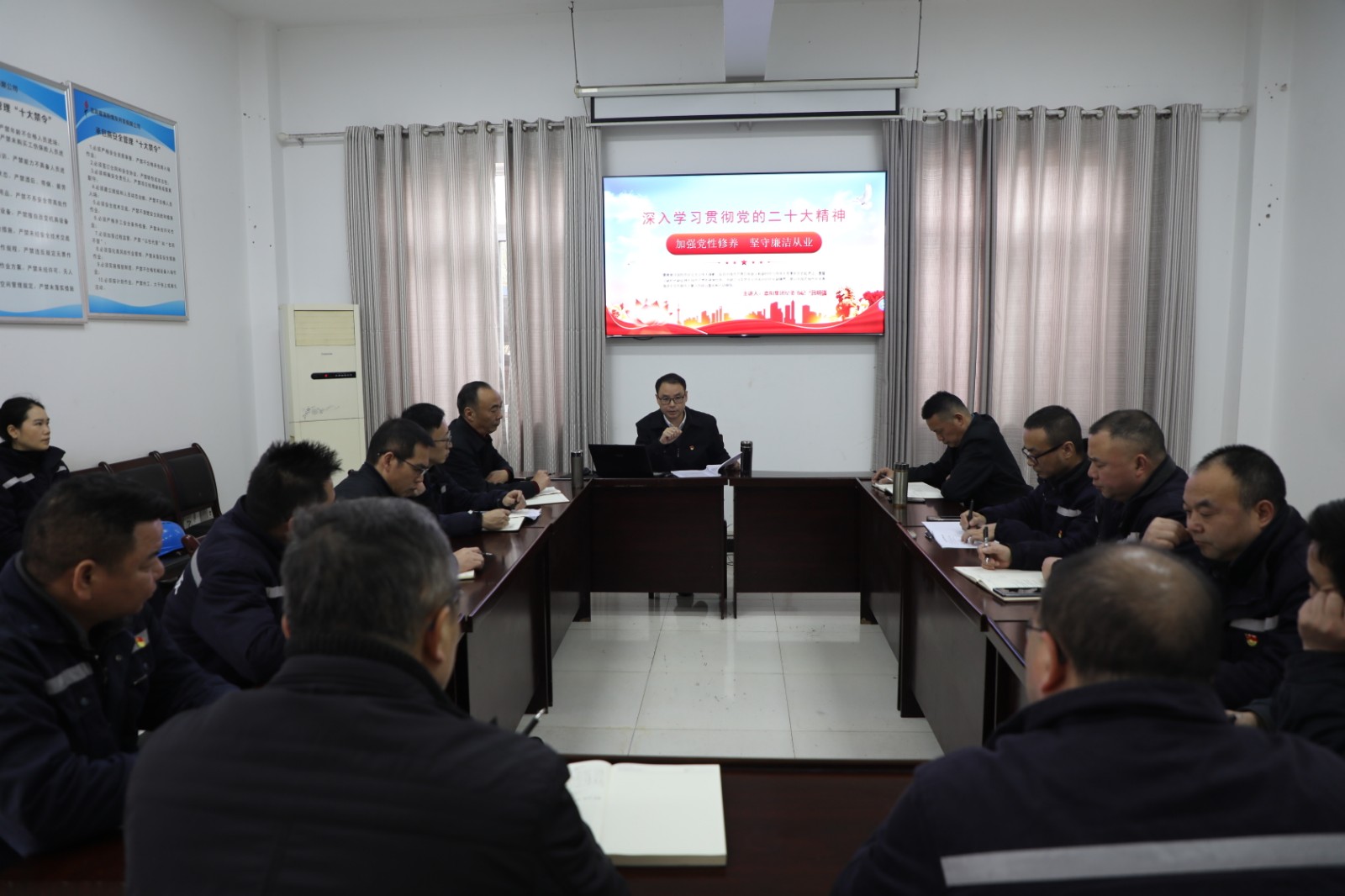 宣講以《學(xué)習(xí)貫徹黨的二十大精神 加強(qiáng)黨性修養(yǎng) 堅(jiān)守廉潔從業(yè)》為題,結(jié)合黨的二十大精神和省委十二屆二次全會精神的深刻內(nèi)涵和核心要義,以報告中堅(jiān)定不移全面從嚴(yán)治黨為主基調(diào),深入剖析了中央八項(xiàng)規(guī)定精神、四風(fēng)問題、隱形貪腐以及如何建立基層黨組織廉潔長效機(jī)制等方面內(nèi)容,指出全面從嚴(yán)治黨是抓好基層支部組織建設(shè)、紀(jì)律建設(shè)、作風(fēng)建設(shè)的重點(diǎn)任務(wù)和永恒課題。黨的二十大對全面從嚴(yán)治黨的論述內(nèi)涵深刻,意義重大,對全黨同志提出了明確要求,也為全體黨員干部、黨建工作提供了根本遵循。全體黨員干部要堅(jiān)定“兩個確立”、強(qiáng)化“四個意識”、堅(jiān)持“四個自信”,堅(jiān)決做到“兩個維護(hù)”,講政治、守規(guī)矩、作表率,自覺為黨和人民事業(yè)增添正能量,做全面從嚴(yán)治黨的支持者和模范踐行者。要深入學(xué)習(xí)貫徹黨的二十大精神和省委十二屆二次全會精神,做到學(xué)習(xí)領(lǐng)會更深刻、掌握精神更全面,貫徹落實(shí)上級決策部署和中央八項(xiàng)規(guī)定精神更堅(jiān)決。要持續(xù)深入組織學(xué)習(xí)培訓(xùn),把思想行動統(tǒng)一到黨的二十大精神和工作部署上來。要強(qiáng)化主體責(zé)任,在規(guī)范化管理中狠抓制度執(zhí)行,認(rèn)真執(zhí)行第一議題學(xué)習(xí)制度,嚴(yán)格落實(shí)相關(guān)制度要求,推動學(xué)習(xí)由被動變主動。要學(xué)用結(jié)合,學(xué)以致用,把理論學(xué)習(xí)與業(yè)務(wù)能力提升結(jié)合起來,與抓黨風(fēng)廉潔責(zé)任落實(shí)結(jié)合起來,與推動企業(yè)高質(zhì)量發(fā)展結(jié)合起來,提高政治判斷力、政治領(lǐng)悟力和政治執(zhí)行力,加強(qiáng)政策研究,提升為福溪電廠服務(wù)的質(zhì)量,拓展粉煤灰、石膏、爐渣的外部市場,切實(shí)推動粉煤灰公司高質(zhì)量發(fā)展。
