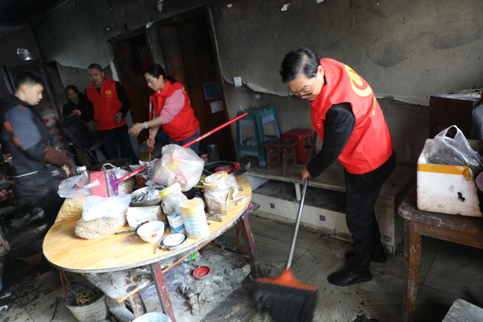 宋國新是智障人員,他的母親是智力2級殘,父親在一次意外事故中死亡,目前跟隨爺爺奶奶生活,住在礦區(qū)西區(qū)。他的爺爺奶奶也已經(jīng)80多歲了,早已失去勞動能力。機關(guān)第一黨支部在鄉(xiāng)村振興中與他結(jié)對以來,多次到他家中看望他們,幫助他們解決生活中的實際困難。3月3日,由于電線線路失火,宋國新家中財物毀于一旦。機關(guān)第一黨支部得知情況后,第一時間組織黨員到宋國新家中看望他們,向他們送去米、面、油等生活用品,為他們打掃火災(zāi)現(xiàn)場,幫助他們?yōu)暮笾亟ā=?jīng)過近1個小時的清掃,完成了火災(zāi)現(xiàn)場的清理工作。