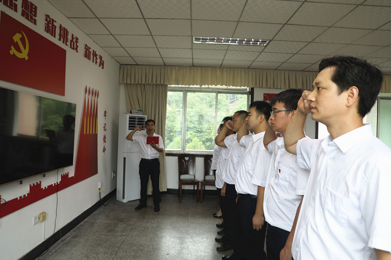 7月1日,嘉陽(yáng)集團(tuán)公司黨委舉行新黨員入黨宣誓儀式,7名新黨員面對(duì)黨旗許下錚錚誓言。