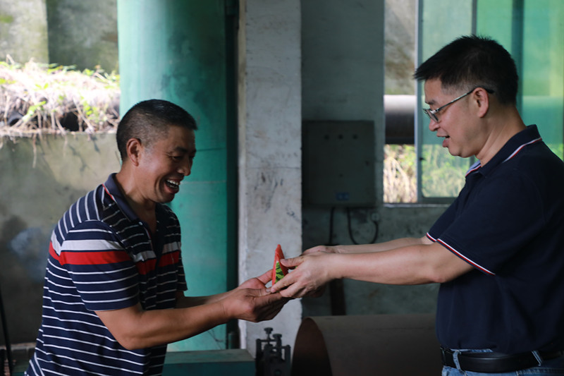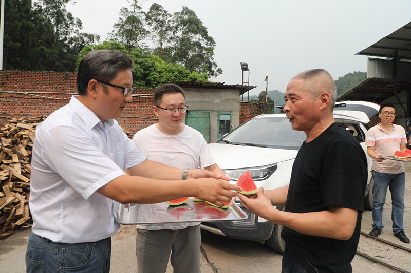 8月6日,副總經(jīng)理詹本遠(yuǎn)、金大鈞帶領(lǐng)機(jī)關(guān)四支部的黨員前往物資供銷公司搬運(yùn)改制班、炸藥庫、庫管班,向堅(jiān)守崗位的職工送上西瓜和茶葉,表達(dá)誠摯的關(guān)心和問候。物資供銷公司承擔(dān)著全公司生產(chǎn)物資的供應(yīng),特別是搬運(yùn)改制班干的都是體力活,工人師傅們一大早就忙個不停,將一車車材料裝車運(yùn)送至井口,曬得黝黑的臉頰和手臂上掛滿了汗珠,汗水浸透了身上的衣服?!鞍嘟M為了我們的安全健康考慮盡可能把活路安排在上午,早上地面熱氣還沒那么高,能多干就爭取多干點(diǎn)……”質(zhì)樸的話語彰顯出工人吃苦耐勞的本色。為辛勞的工人師傅們遞上一塊西瓜,讓他們感受片刻清涼,真切地表達(dá)一分敬意。一行的兩位公司領(lǐng)導(dǎo)每到一處都不忘叮囑工人們在作業(yè)時一定要認(rèn)真做好安全措施,要時刻把健康和安全放在第一位,同時要求主管單位切實(shí)做好勞動保障和防暑降溫工作。