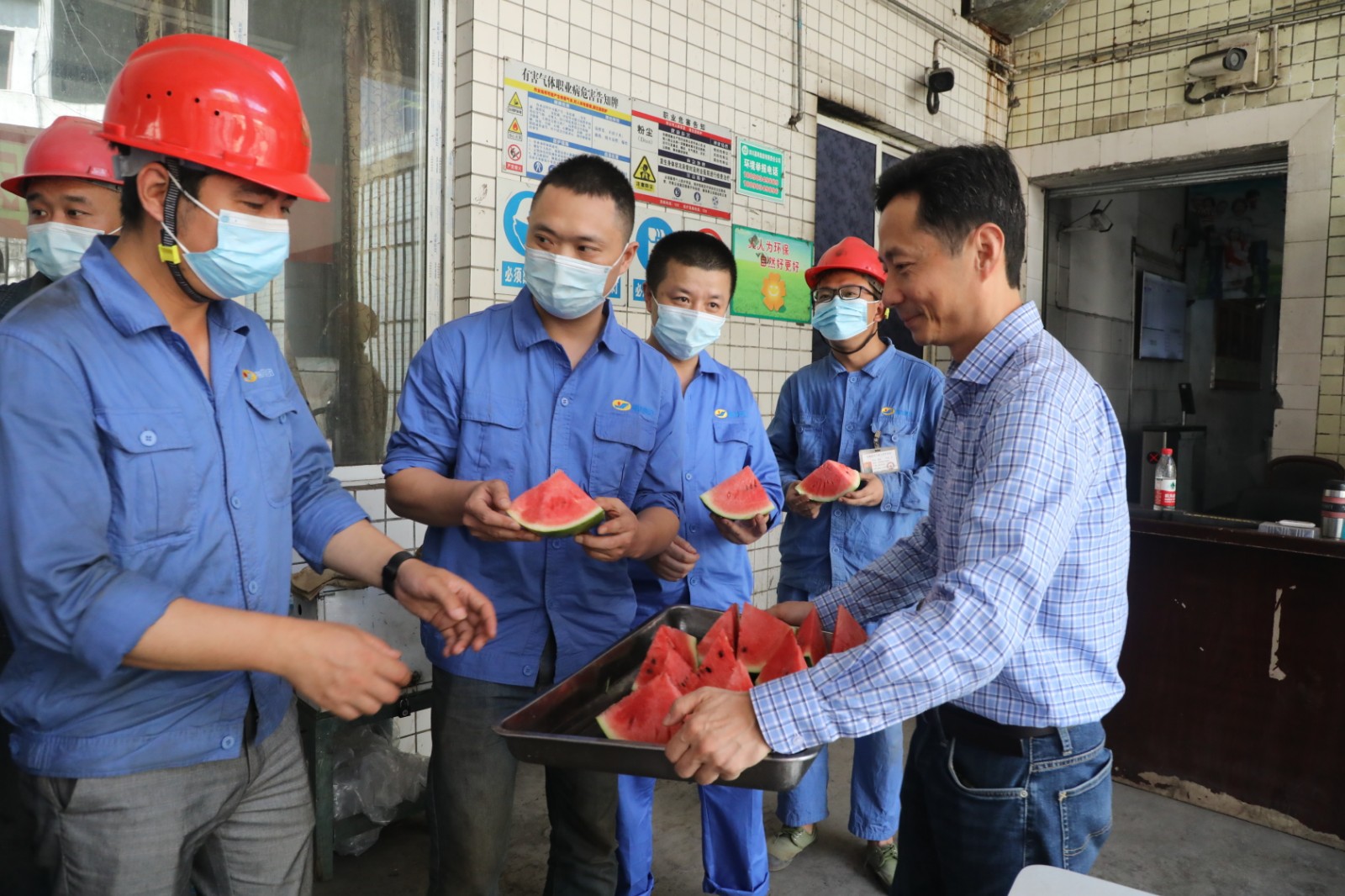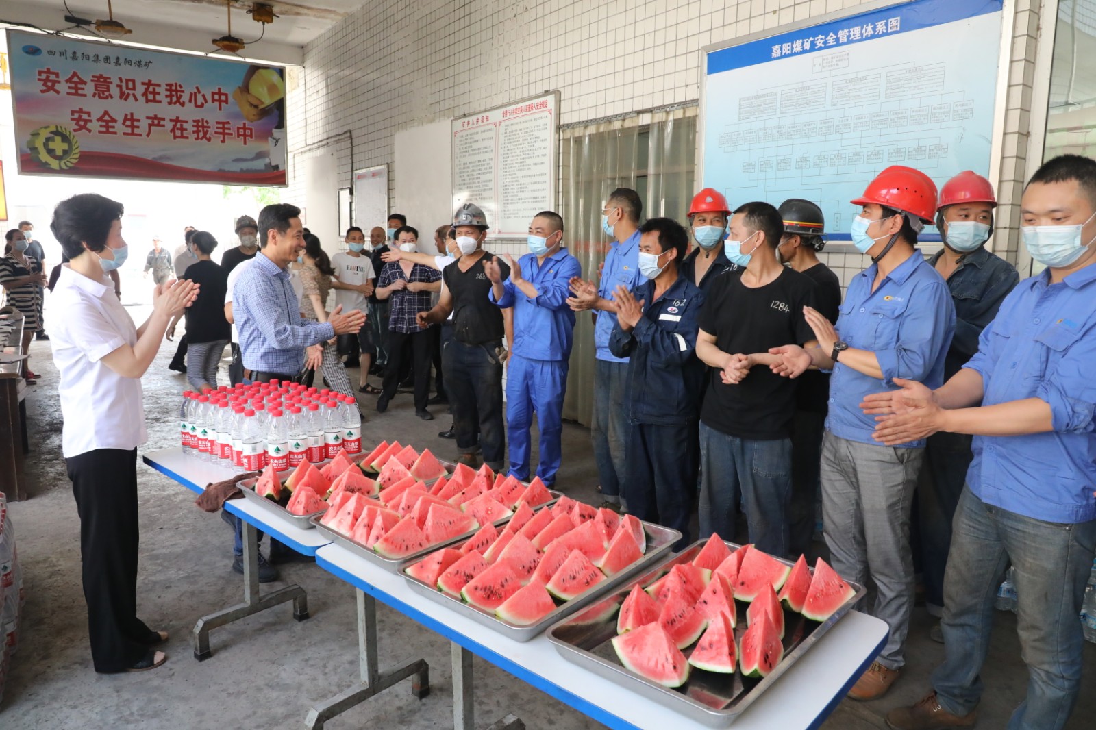 6月7日,川投集團(tuán)副總經(jīng)理張昊、工會副主席白翠紅一行到嘉陽看望慰問一線高溫崗位職工,為他們送上清涼和關(guān)懷。